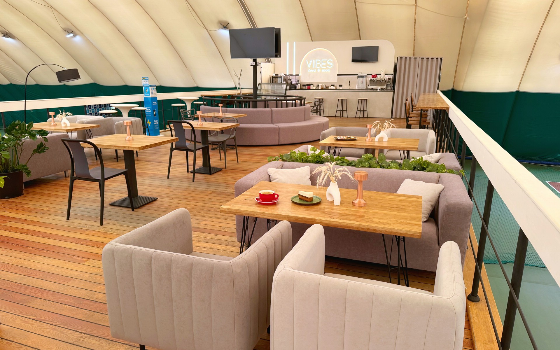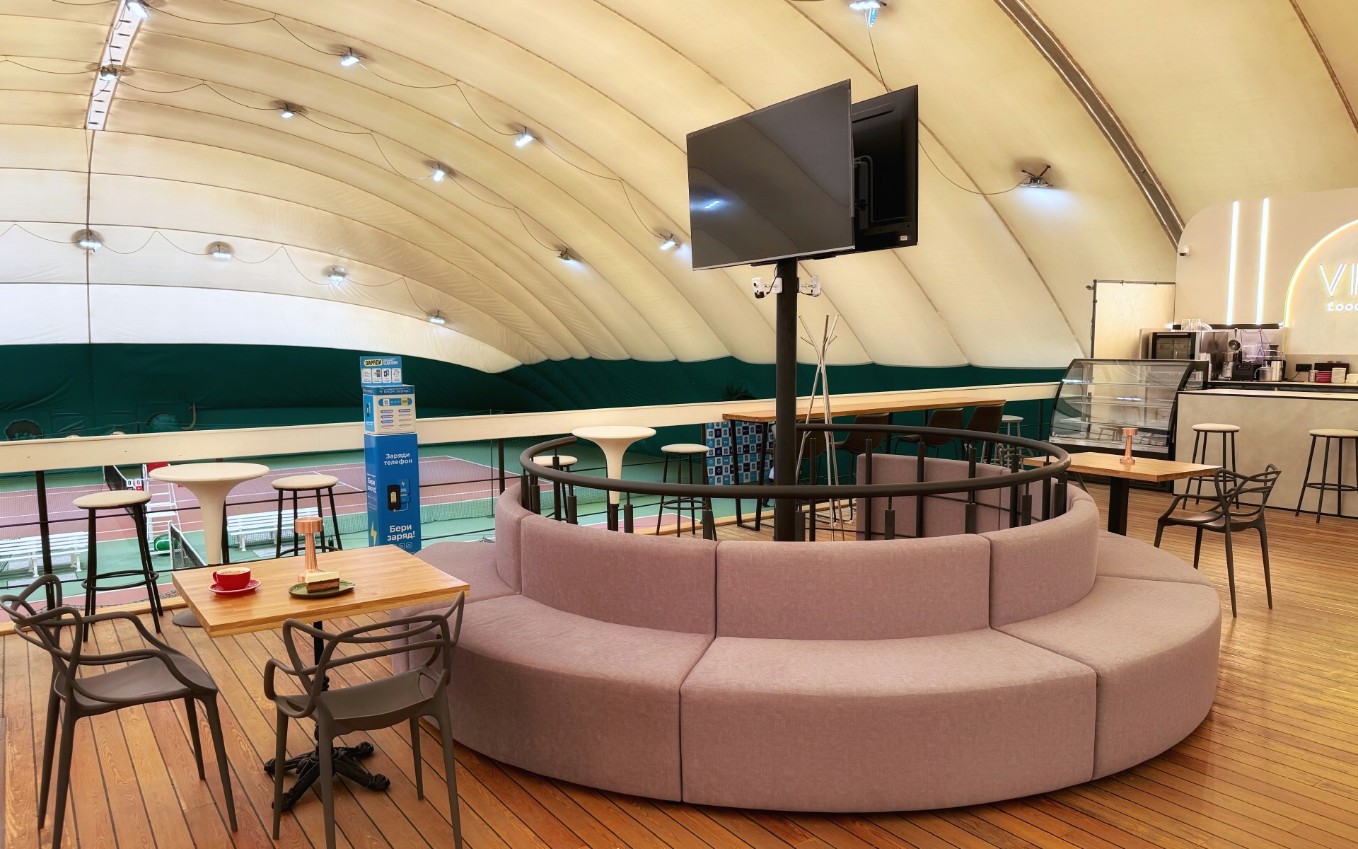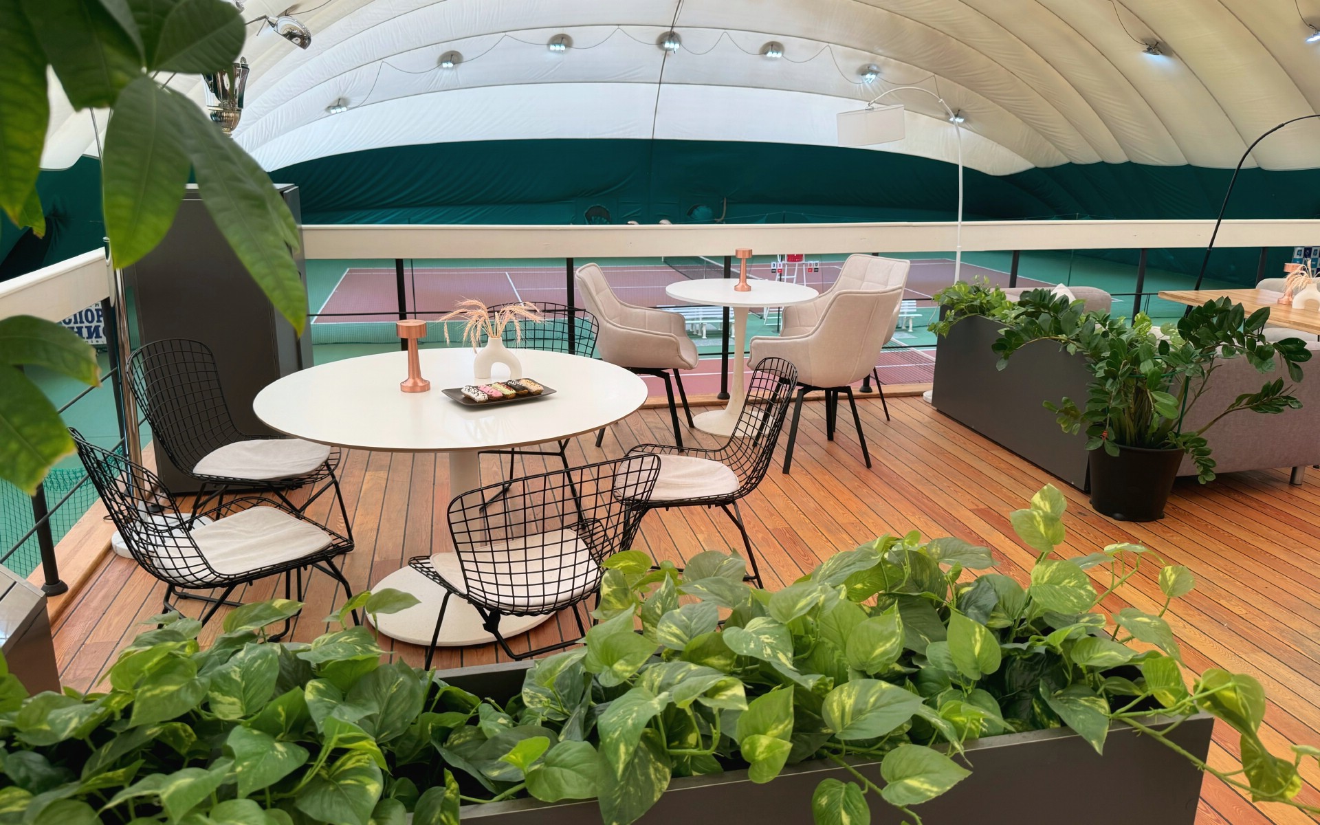 Изюминкой нашего теннисного центра является ланч зона, которая располагается на специально построенной платформе, с которой открывается роскошный вид на корты. Это позволяет нашим гостям понаблюдать за игрой других любителей тенниса и за растущим мастерством своих детей и друзей.