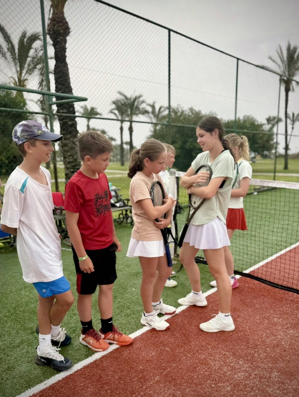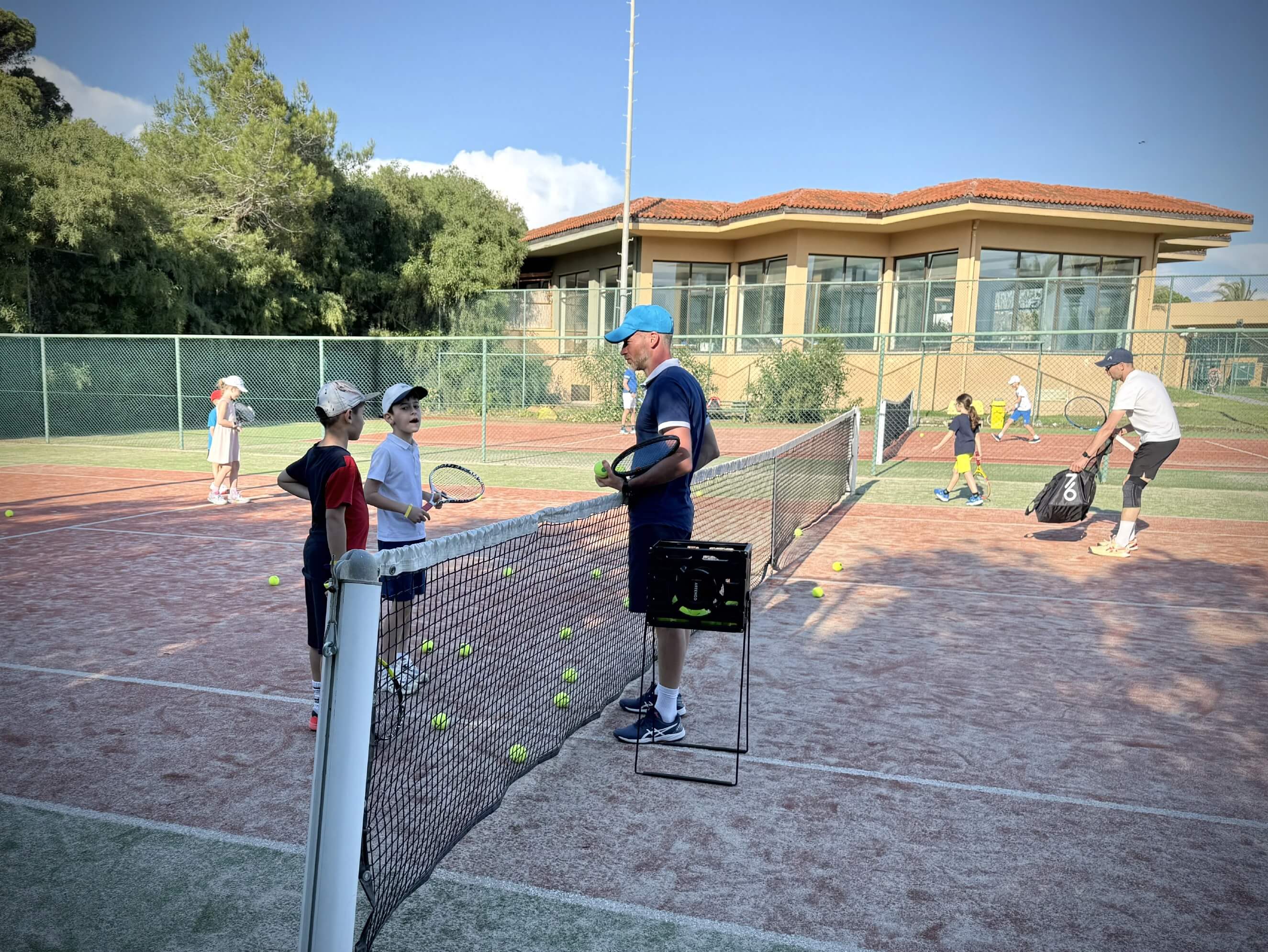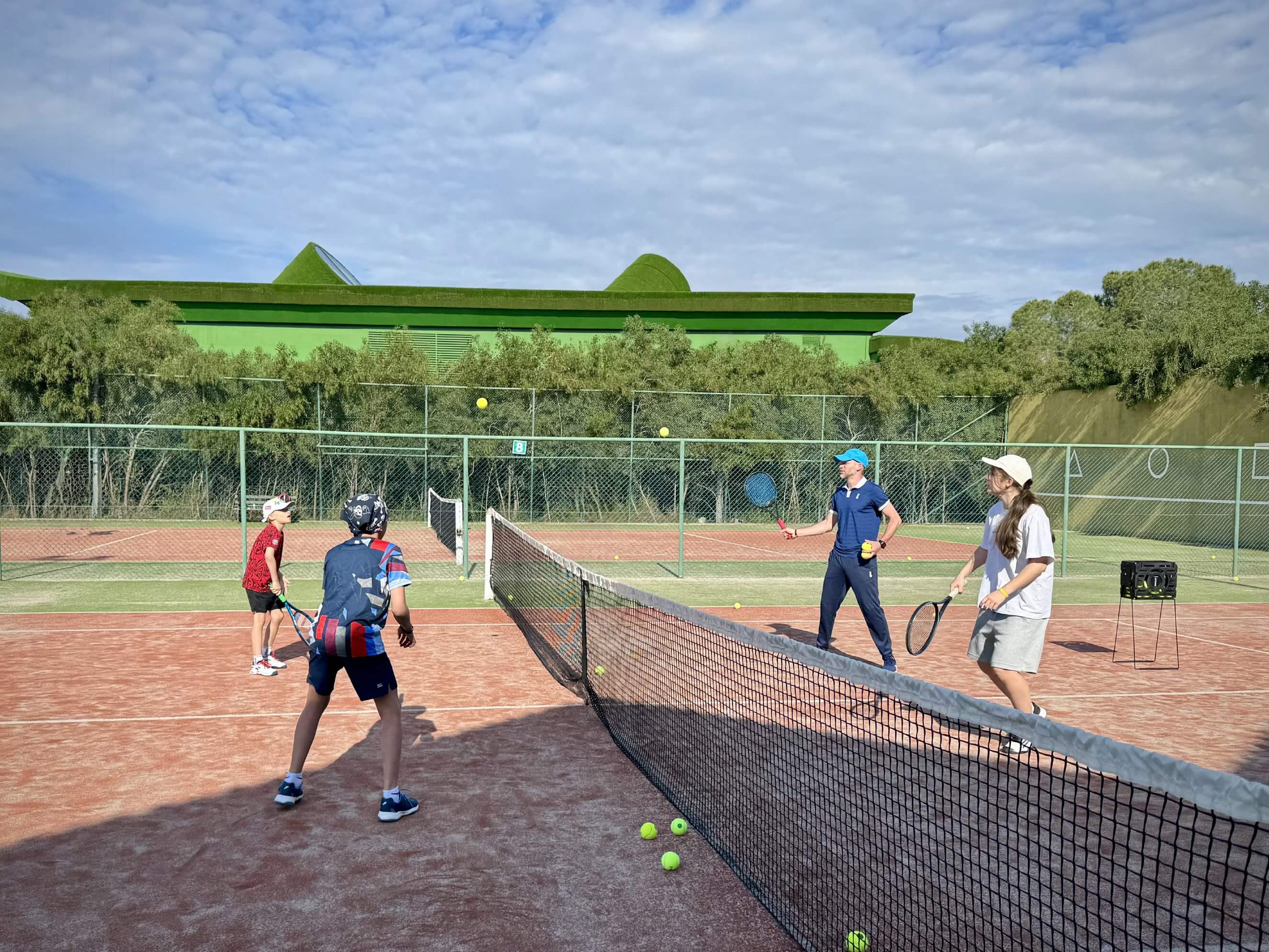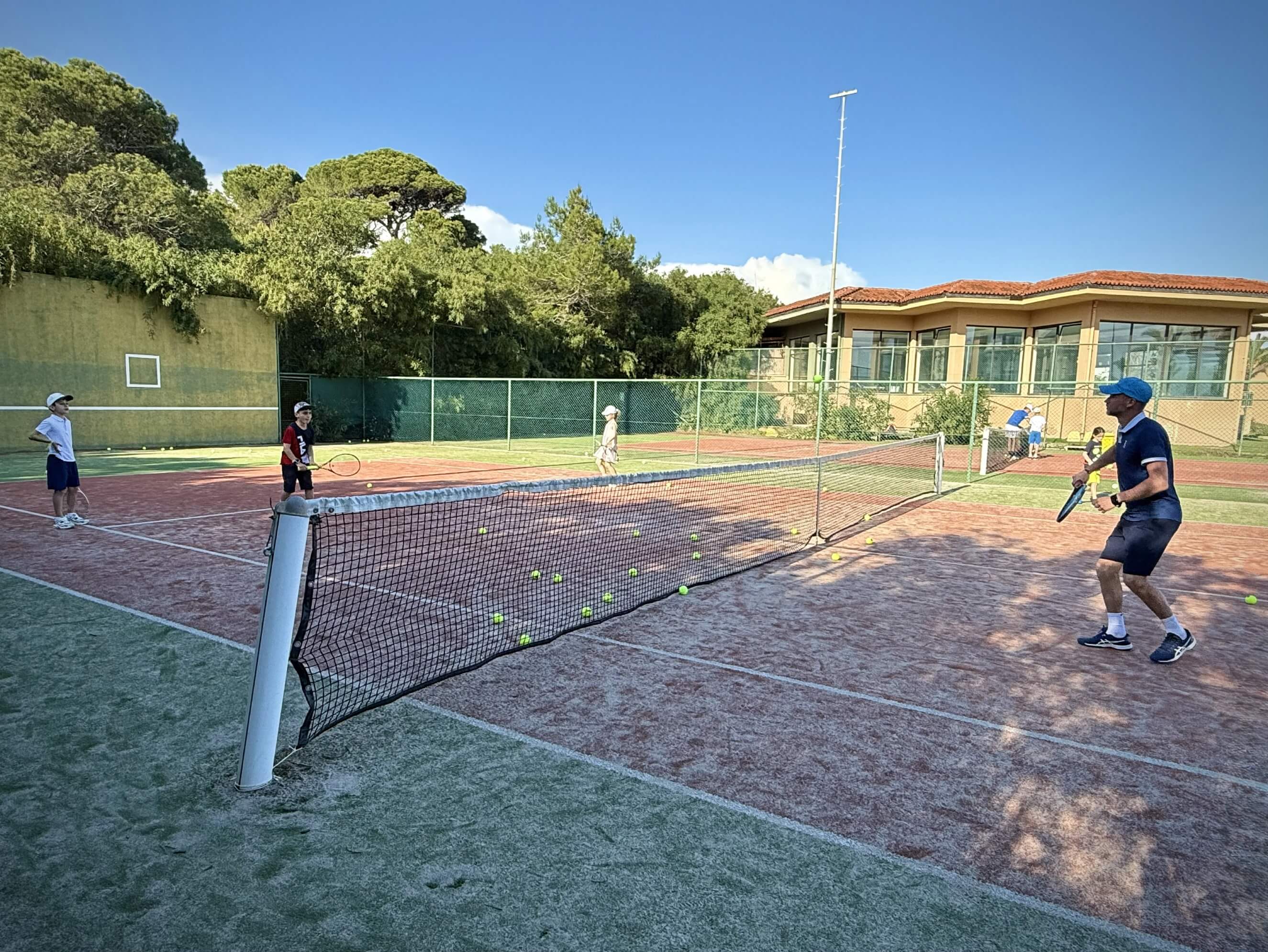 Вечером родители организовывались сами, но мало кто упускал возможность потренироваться дважды в день, ведь приятная майская погода, доступность кортов и наличие партнеров по игре располагают к этому!