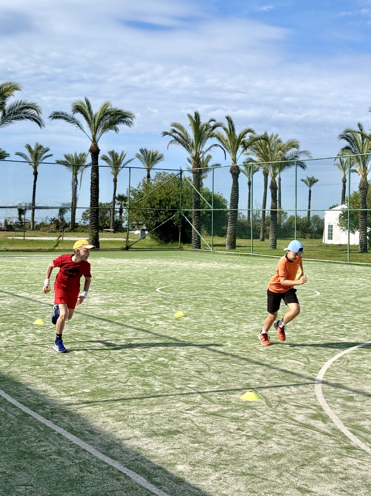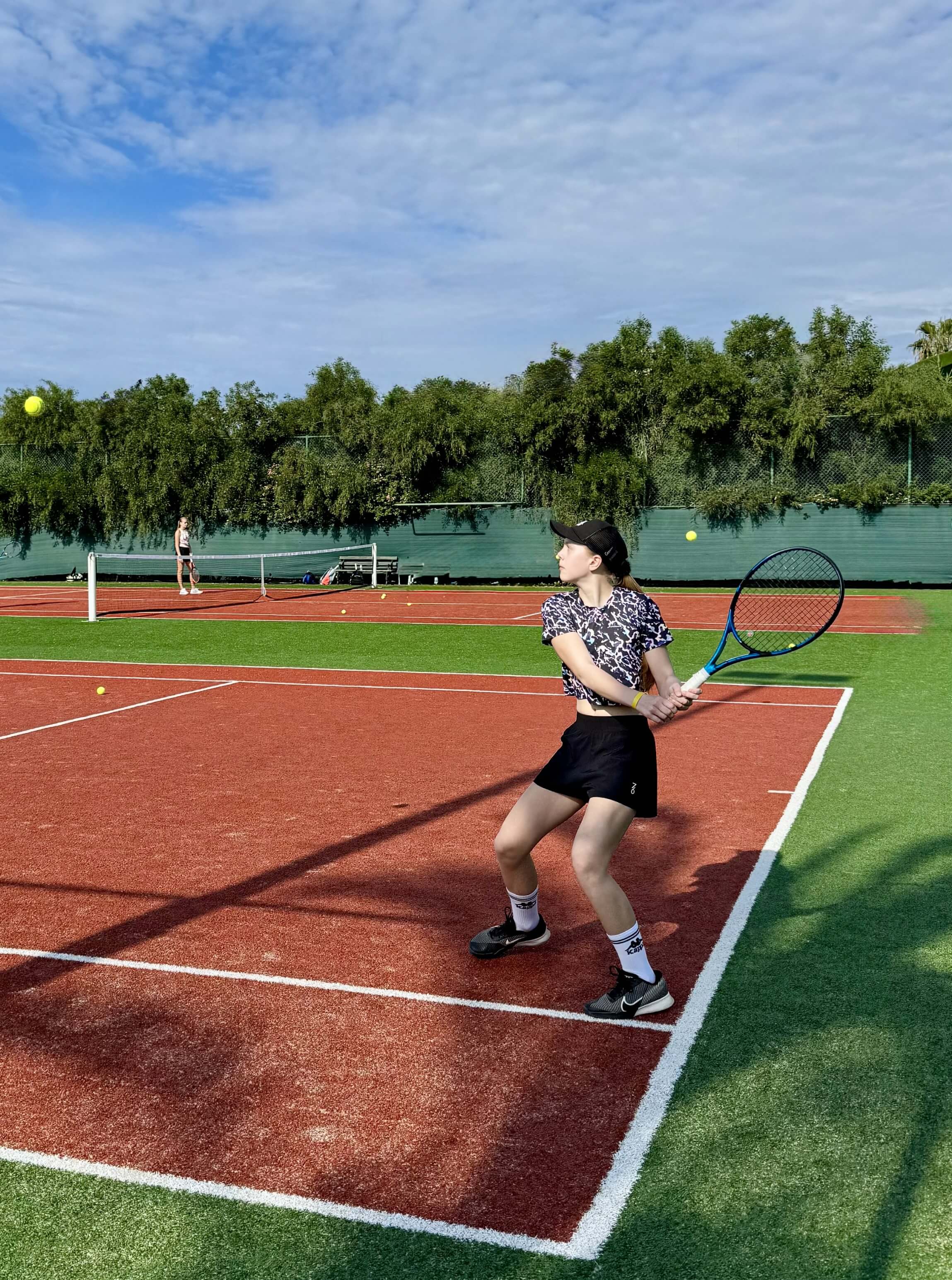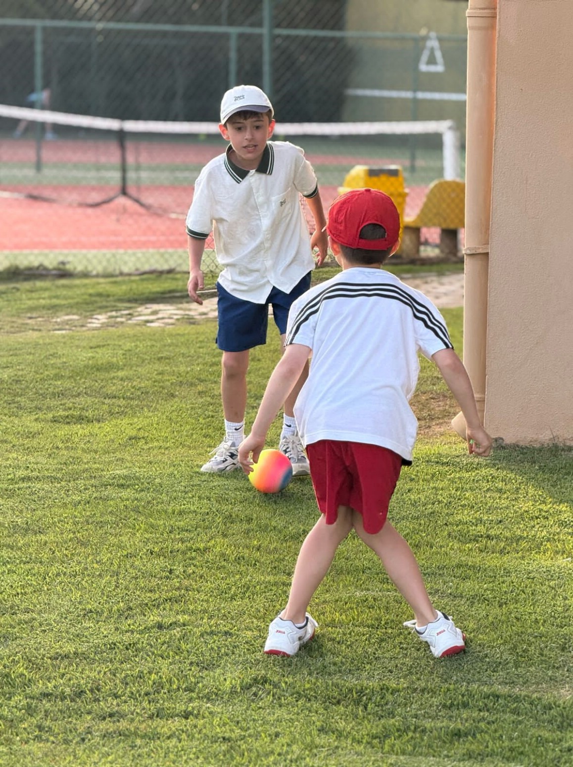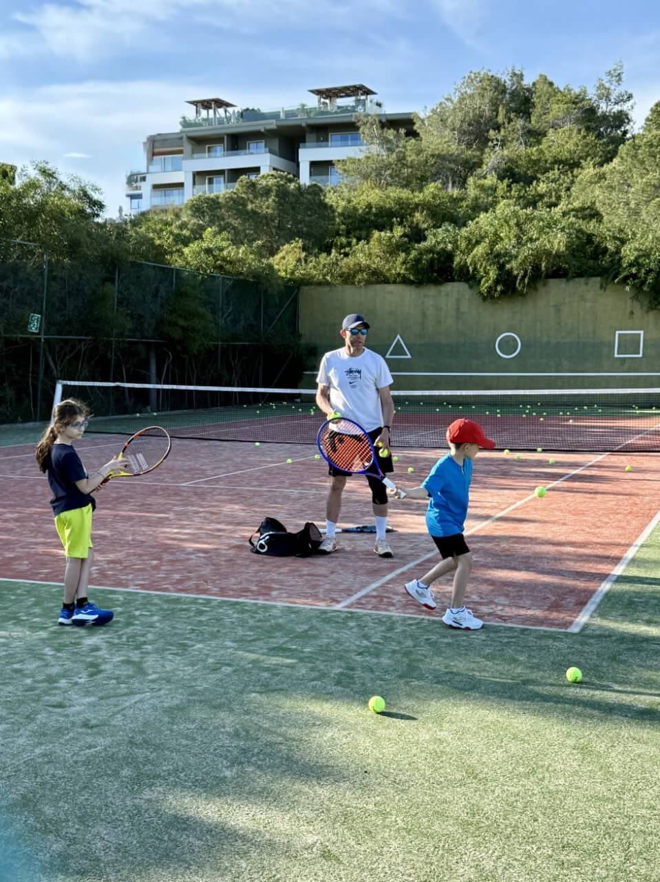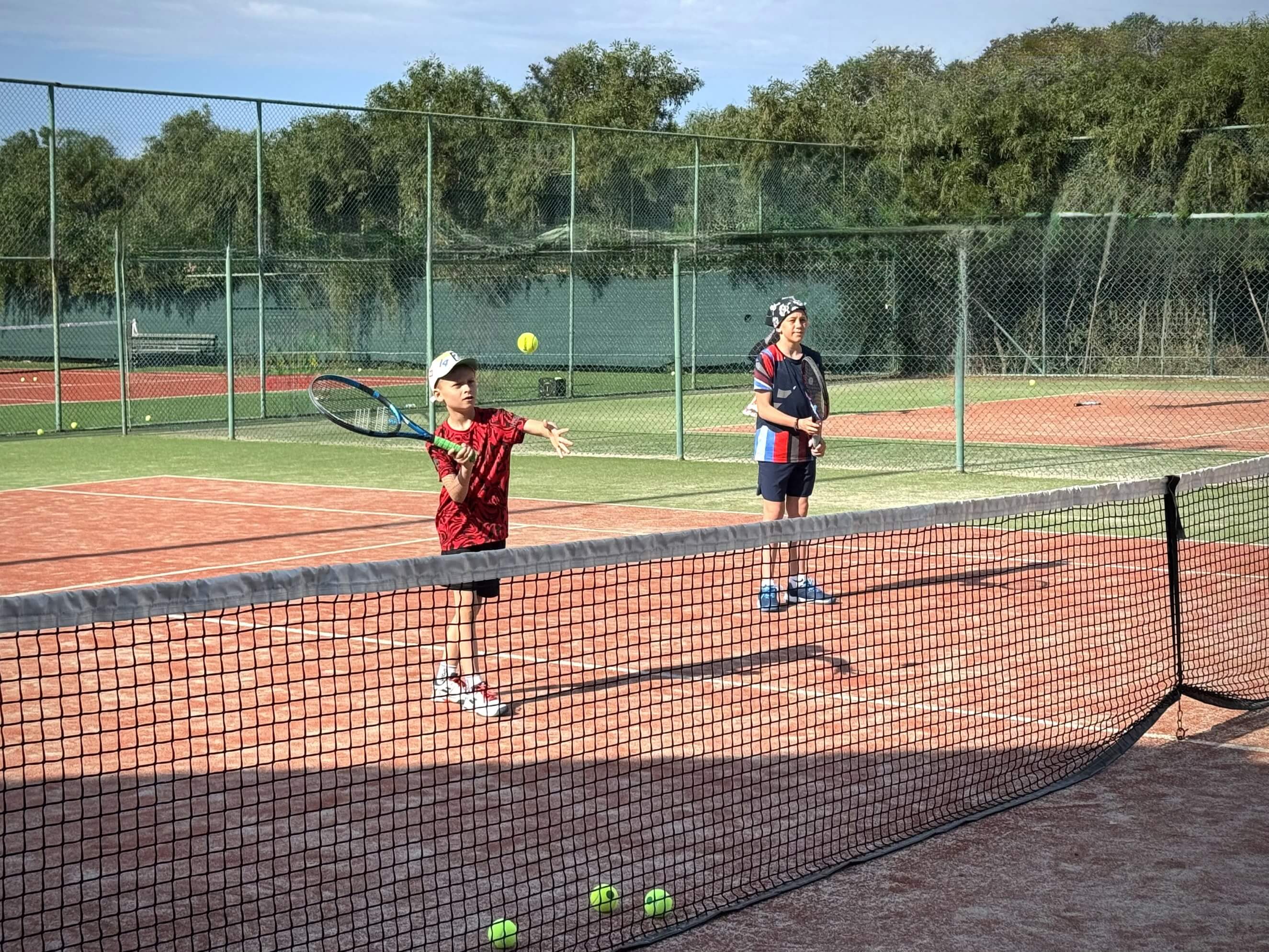Вечером родители организовывались сами, но мало кто упускал возможность потренироваться дважды в день, ведь приятная майская погода, доступность кортов и наличие партнеров по игре располагают к этому!