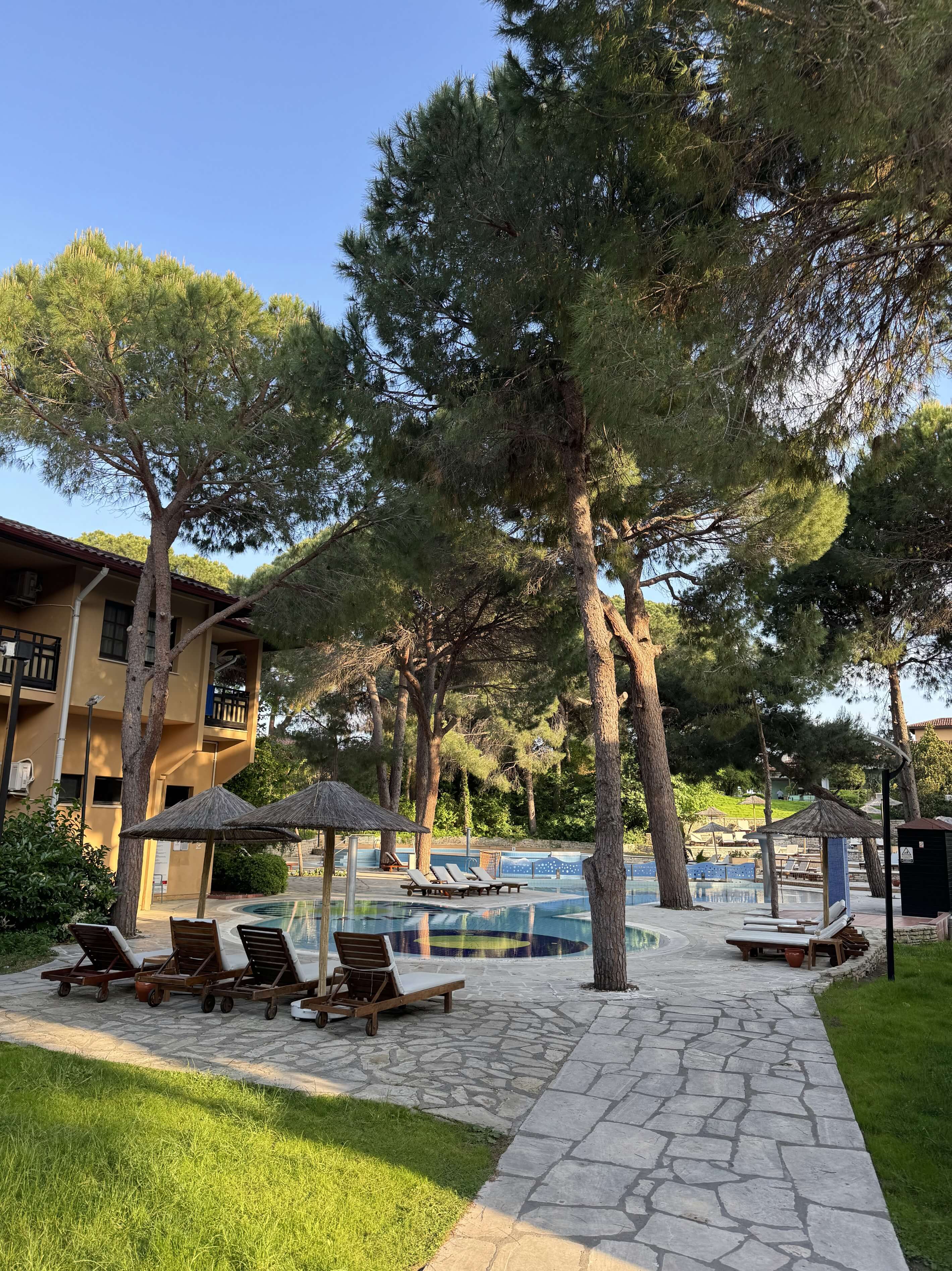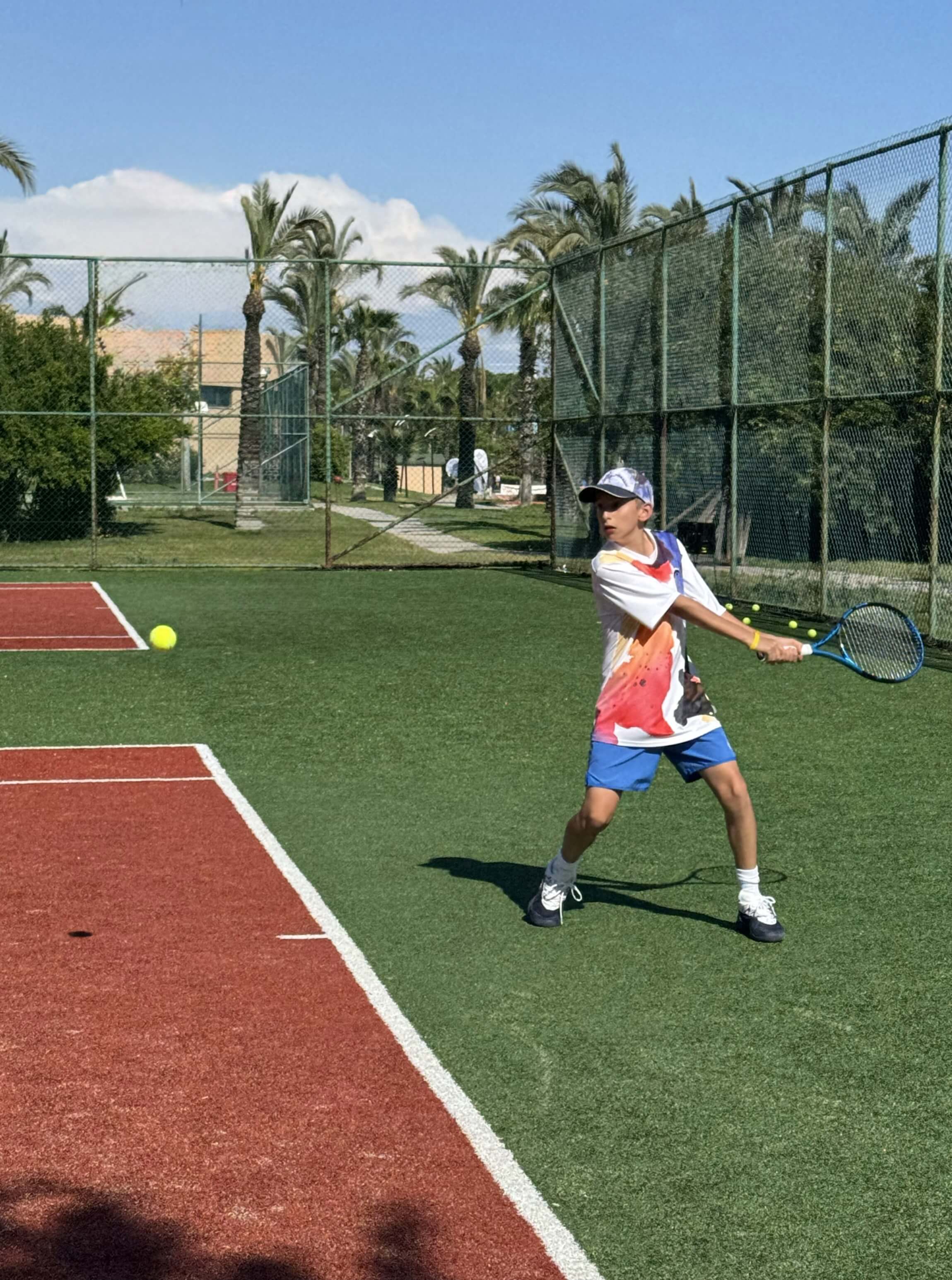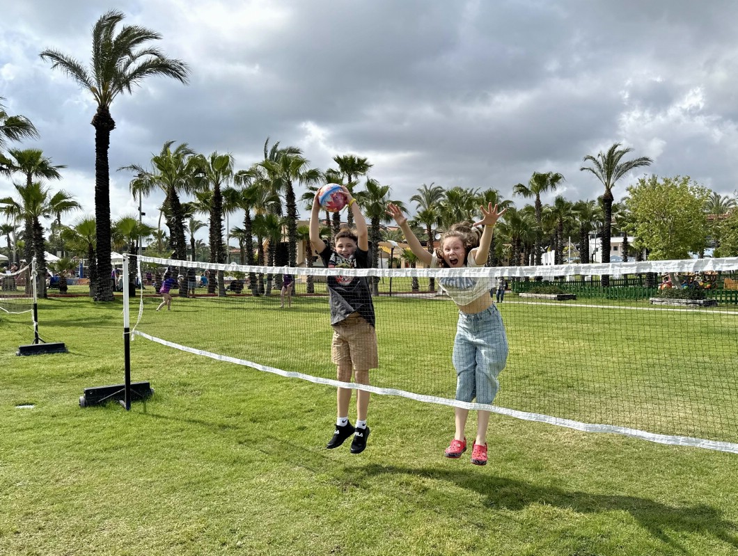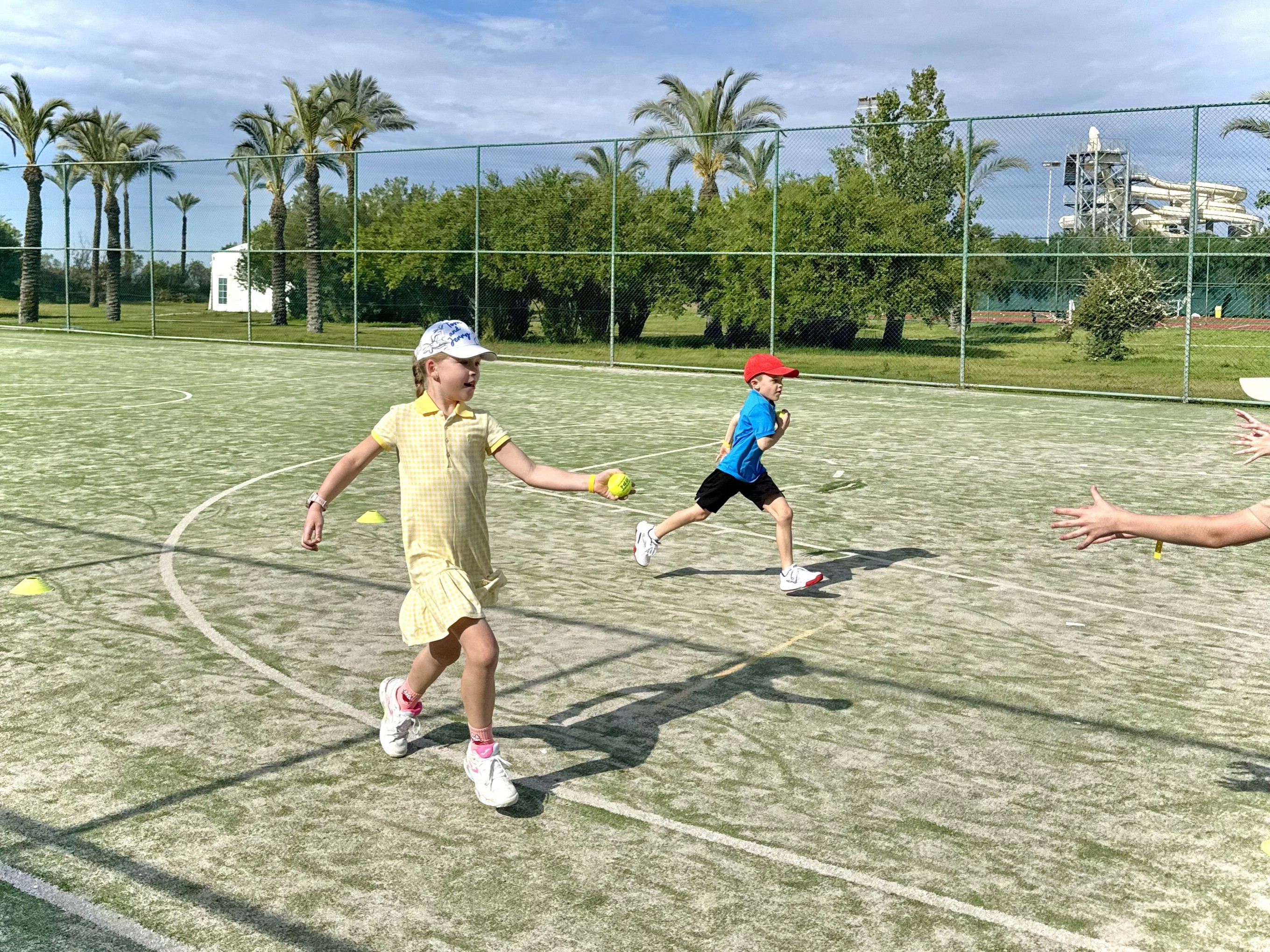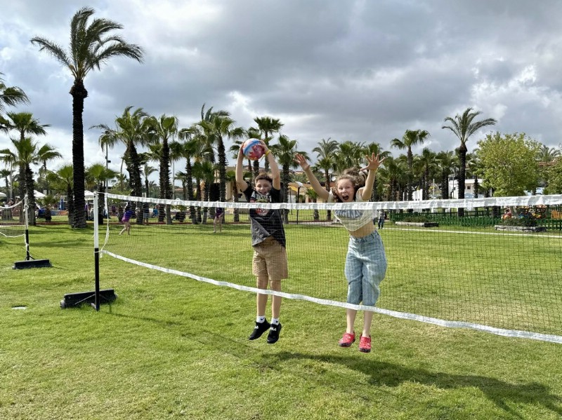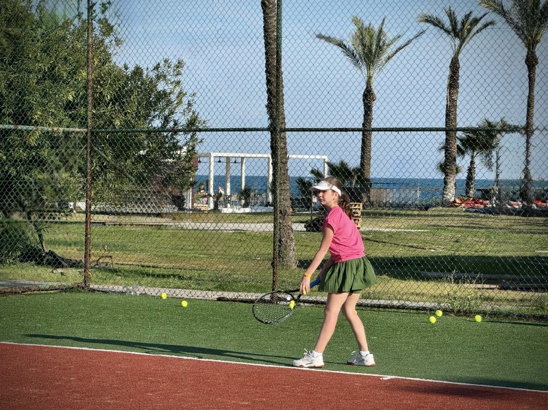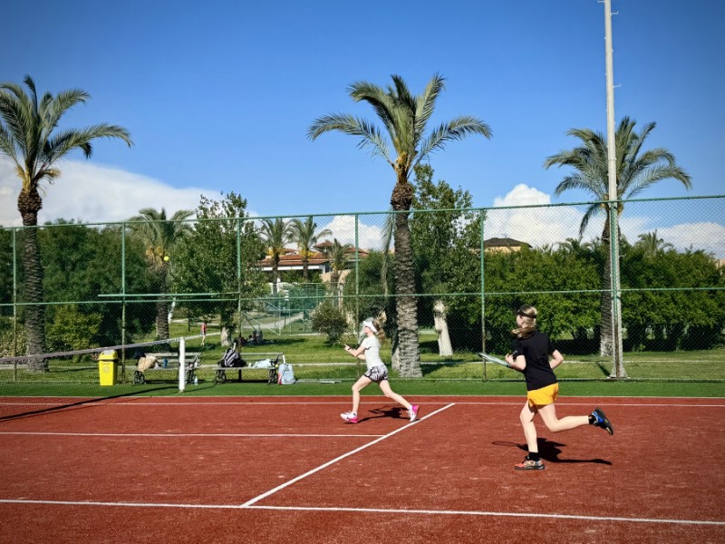 От первомайского московского снега мы сбежали на побережье Белека, в отель Asteria Family Resort Belek 5* (бывший Aquaworld). Здесь, помимо огромной и очень зеленой территории отеля, в нашем распоряжении на протяжении всех десяти дней были 4 корта с покрытием «искусственная трава».