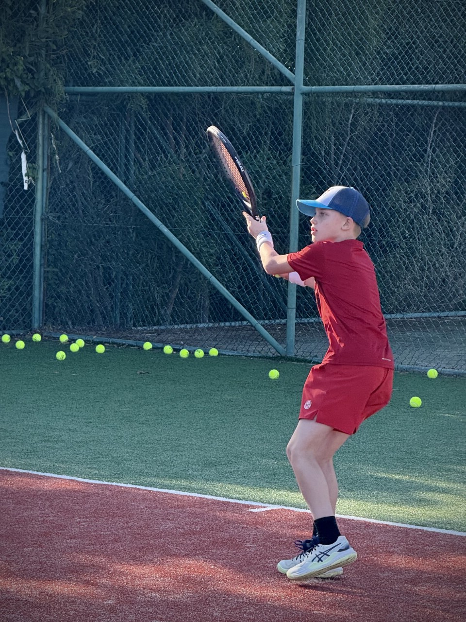 - 2 тренировки по теннису в день по 1.5 часа