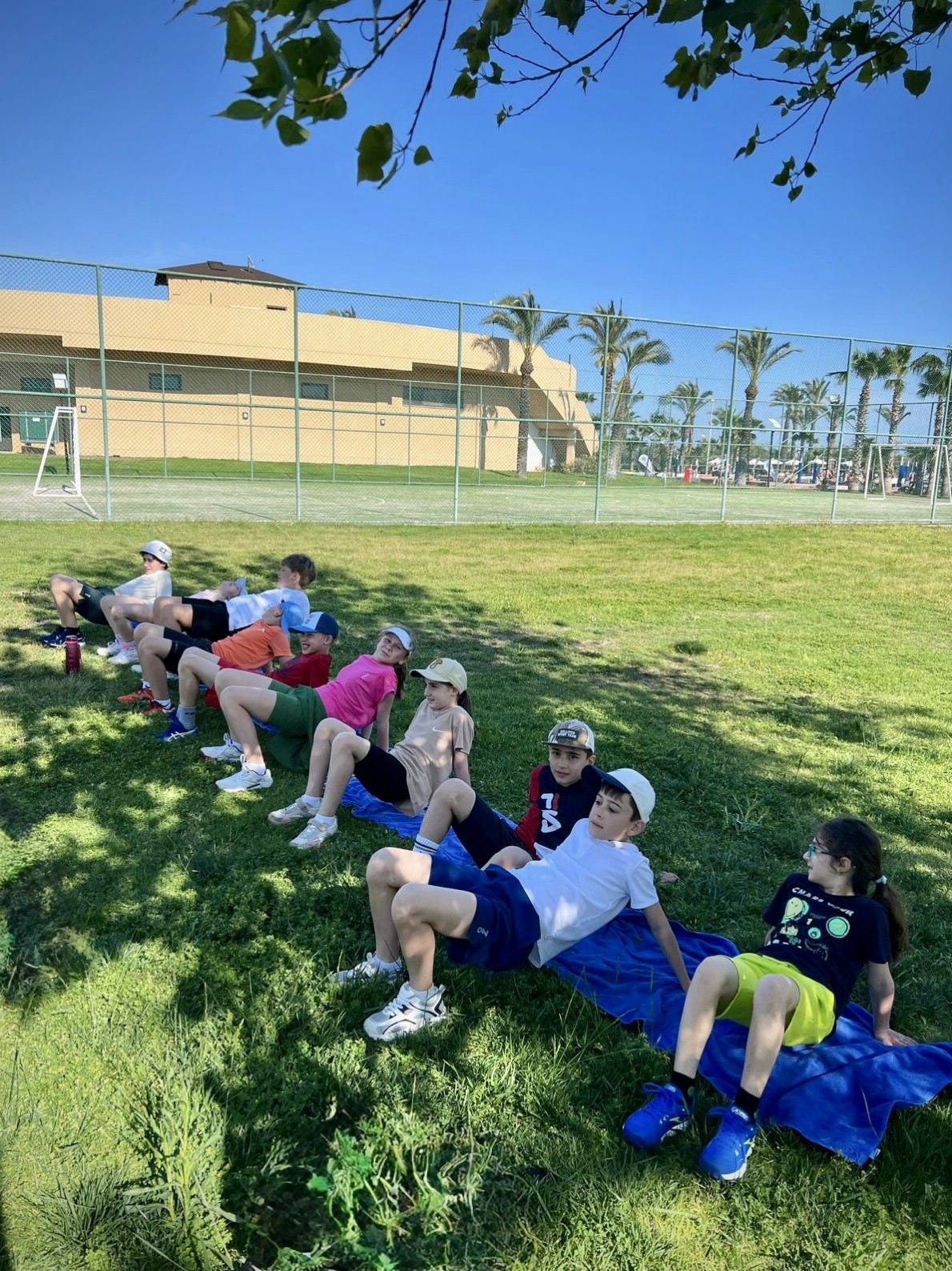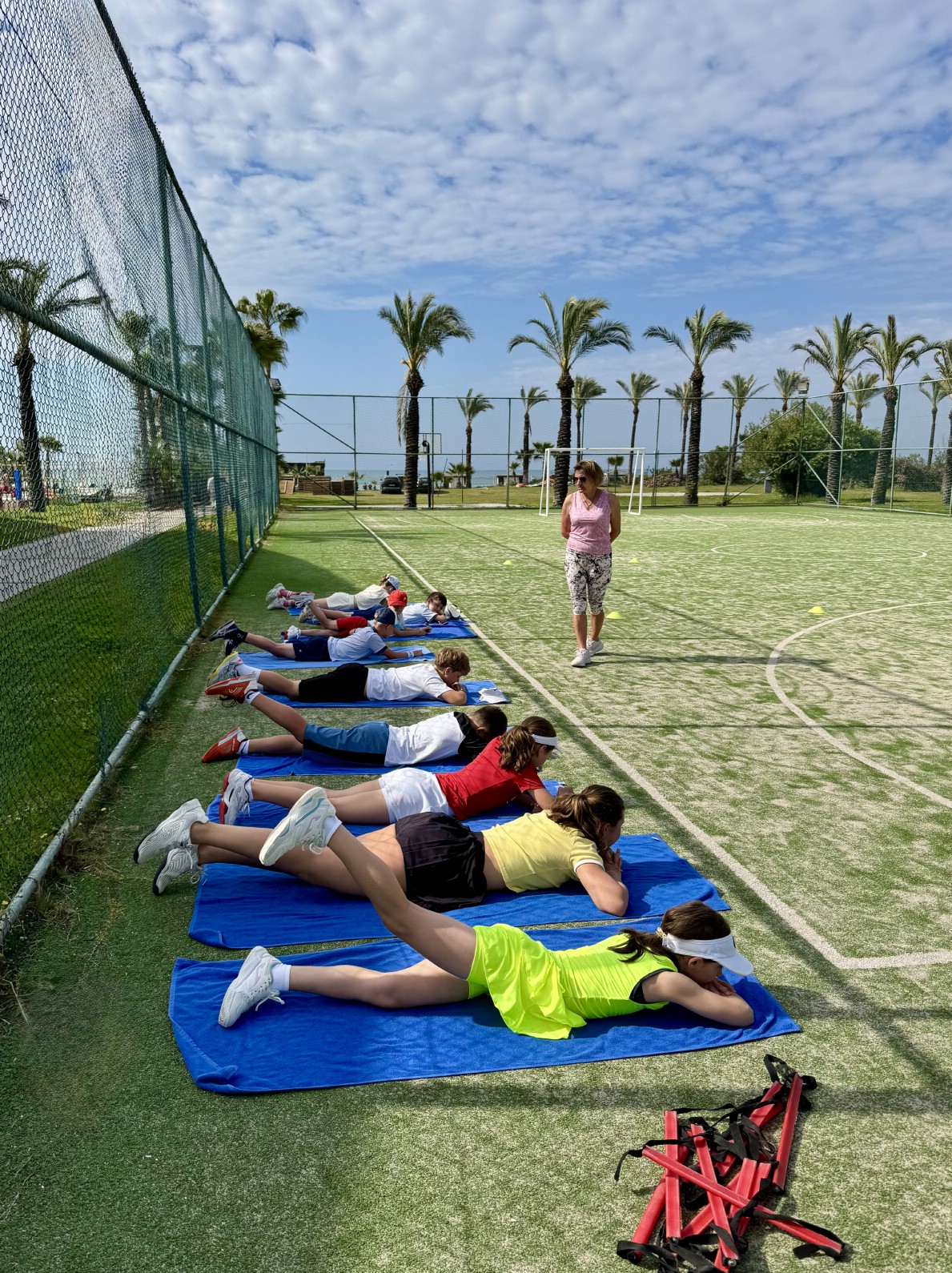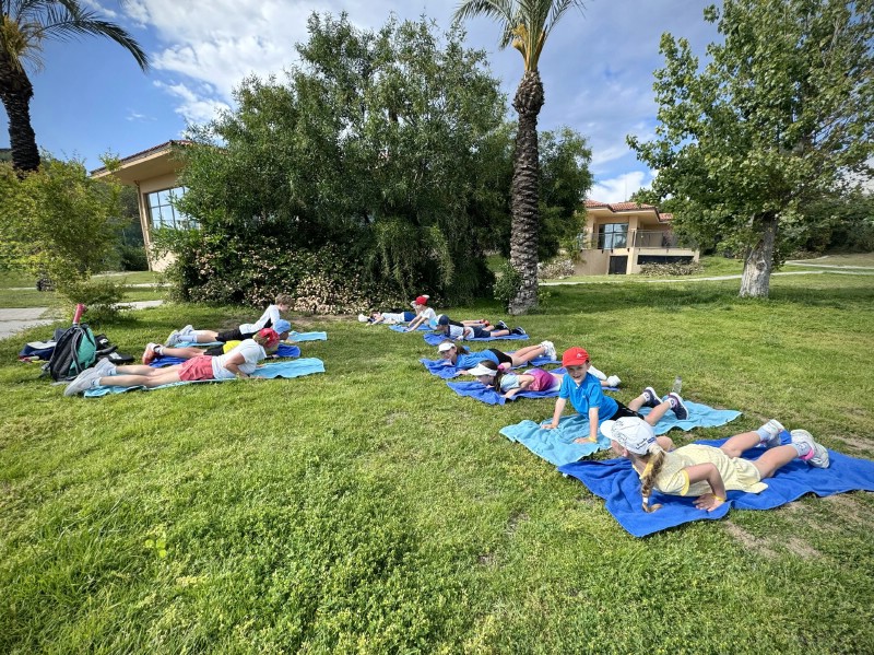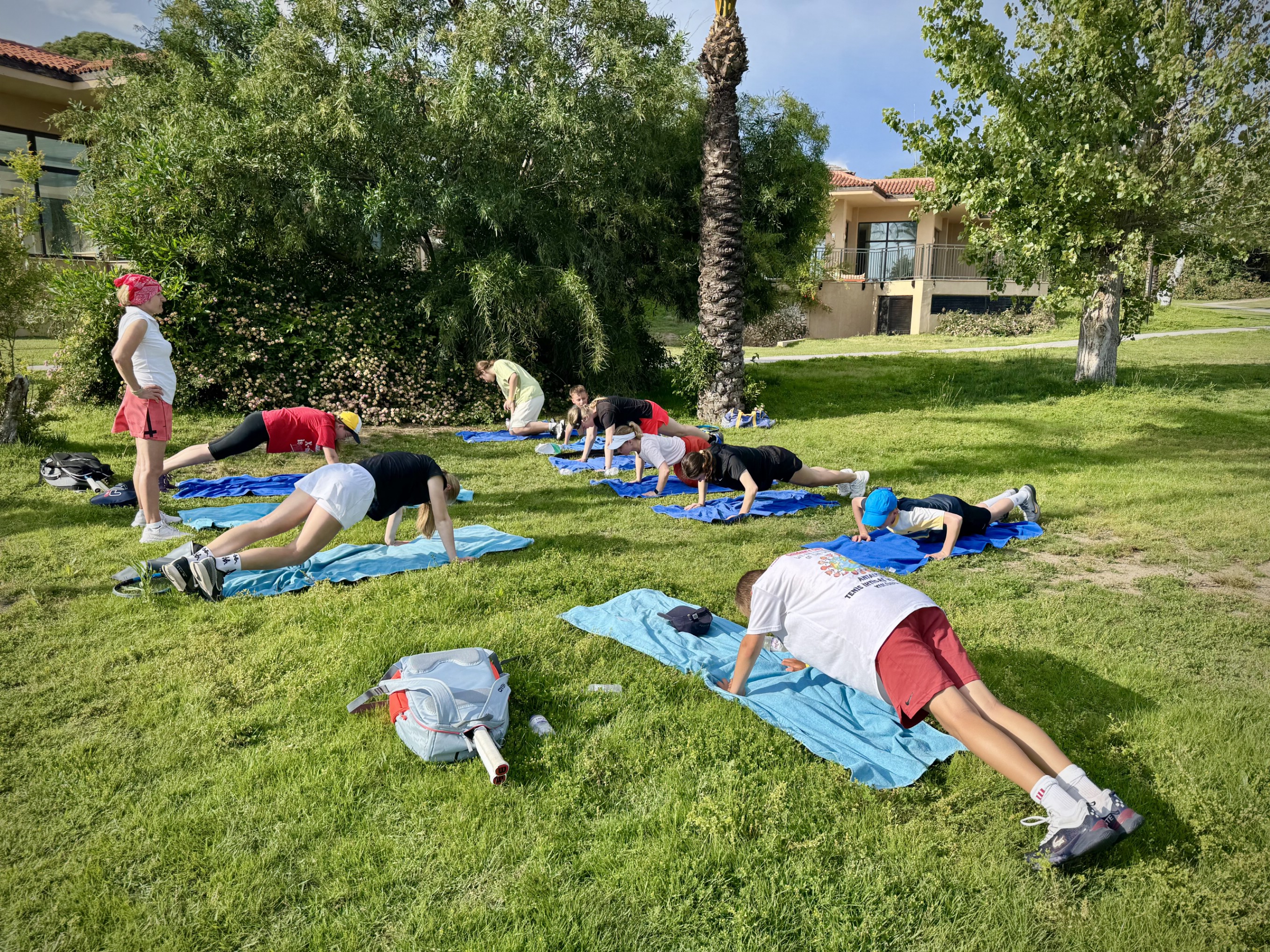 Ну а те, кто в теннис не играл, все равно не остались без спорта: среди родителей был обнаружен тренер по пилатесу, которая любезно организовала занятия для всех желающих.