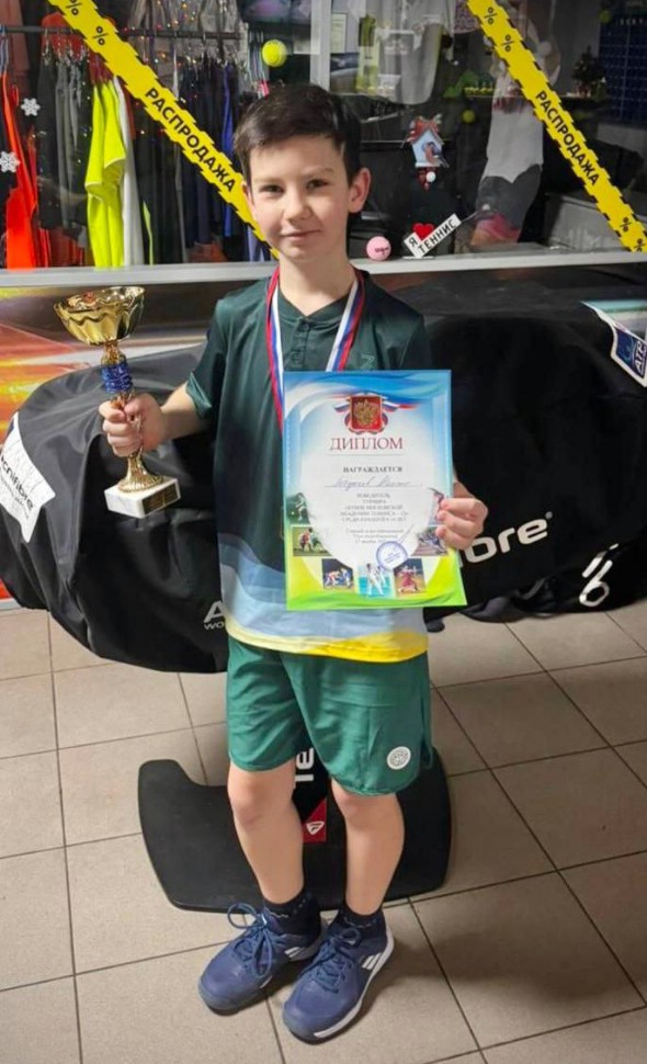 Максим Лебедьков завоевал свой первый титул РТТ на турнире «Кубок Московской академии тенниса - 12», который прошел с 22 по 28 декабря среди юношей 9-10 лет. Максим проявил себя как настоящий борец: почти все его матчи в турнире завершились в трех сетах. Пусть эти первые шаги в большом спорте становятся увереннее с каждым новым соревнованием! Тренеры: Ганчурина С.А. и Артамонова Е.А.