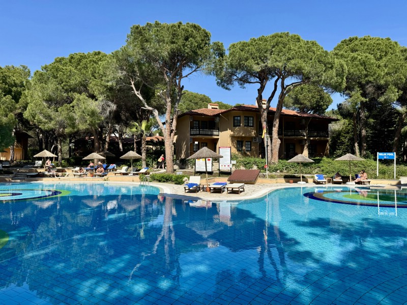 От первомайского московского снега мы сбежали на побережье Белека, в отель Asteria Family Resort Belek 5* (бывший Aquaworld). Здесь, помимо огромной и очень зеленой территории отеля, в нашем распоряжении на протяжении всех десяти дней были 4 корта с покрытием «искусственная трава».